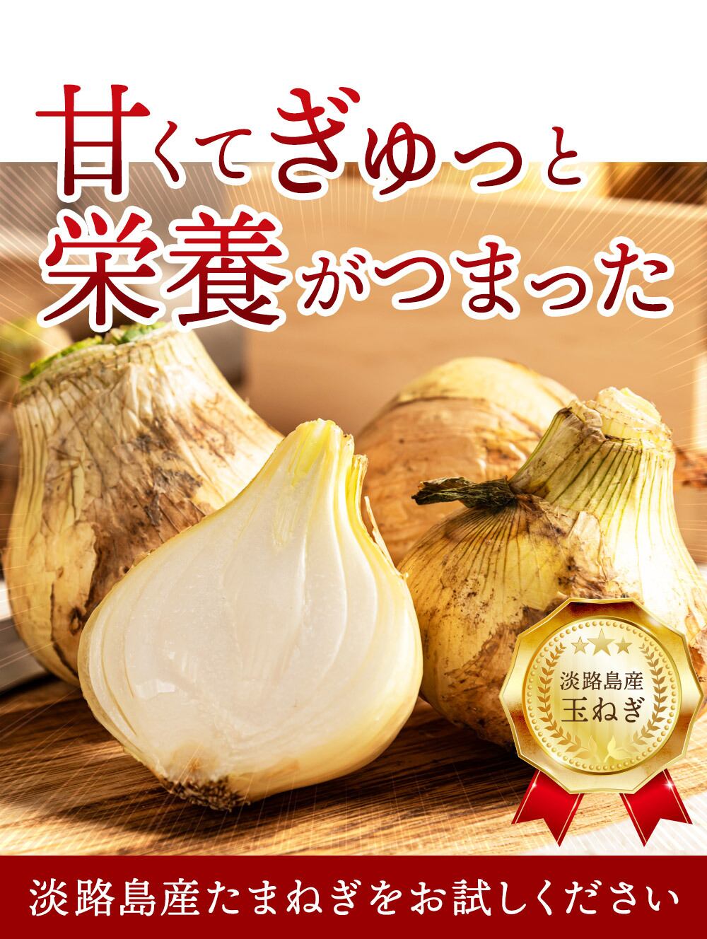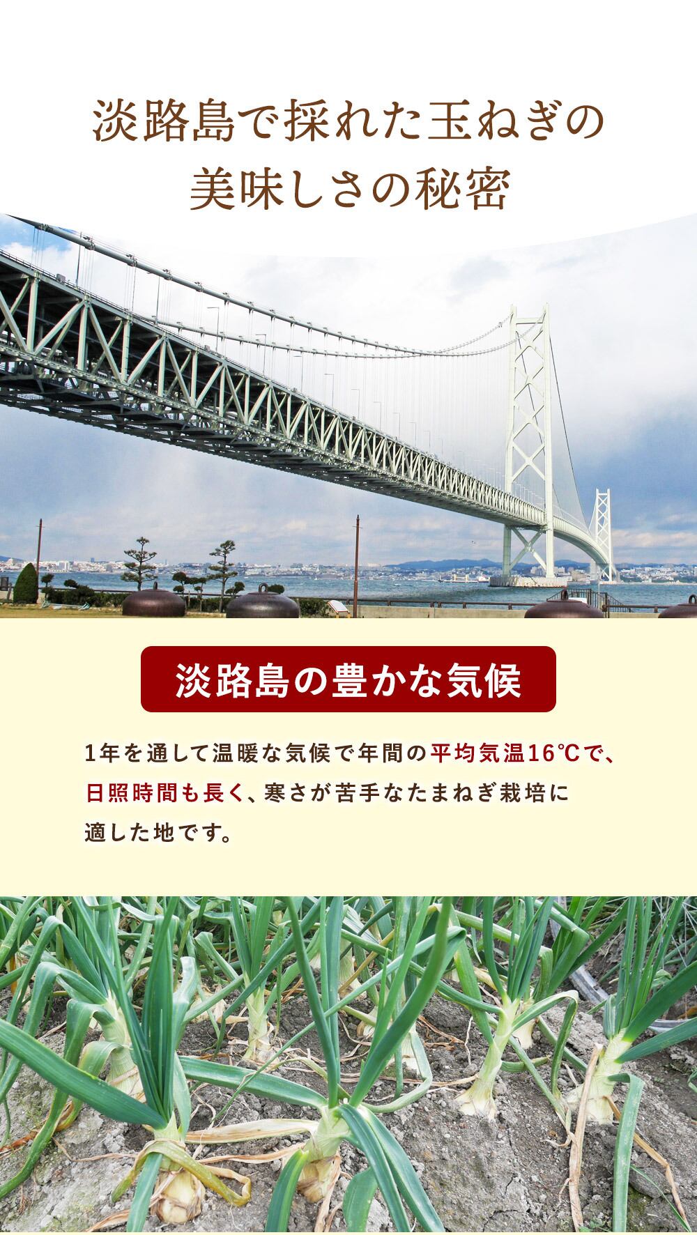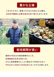 ・淡路島玉ねぎは温暖な気候と海のミネラルをたっぷり受けた土壌で時間をかけて丁寧に育て上げた玉ねぎです。通常たまねぎは4か月ほどで収穫しますが淡路島玉ねぎは6か月程、育て上げてから収穫します。温暖な気候と玉ねぎの発育に適した土壌で、特有の甘さと、とろみを出すのが特徴です。